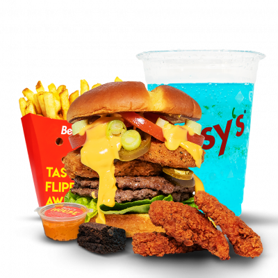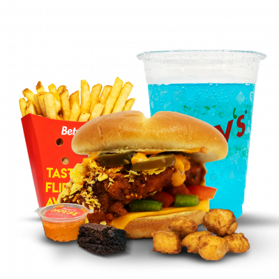 The ultimate feast, 2 Nashville Cluck Burgers (your choice of heat), 2 Nashville Chicken Tacos, and 1 Crunchville Dirty Fries, served with your choice of sauce. Want more? Add a Mac & Cheese Pot to level it up. *HOT & HOT AF RUB DISCLAIMER: By ordering, you accept full responsibility for any burning, sweating, crying, sauce explosions, or regret. If you’ve got spice sensitivity, tell us first, eat at your own risk.